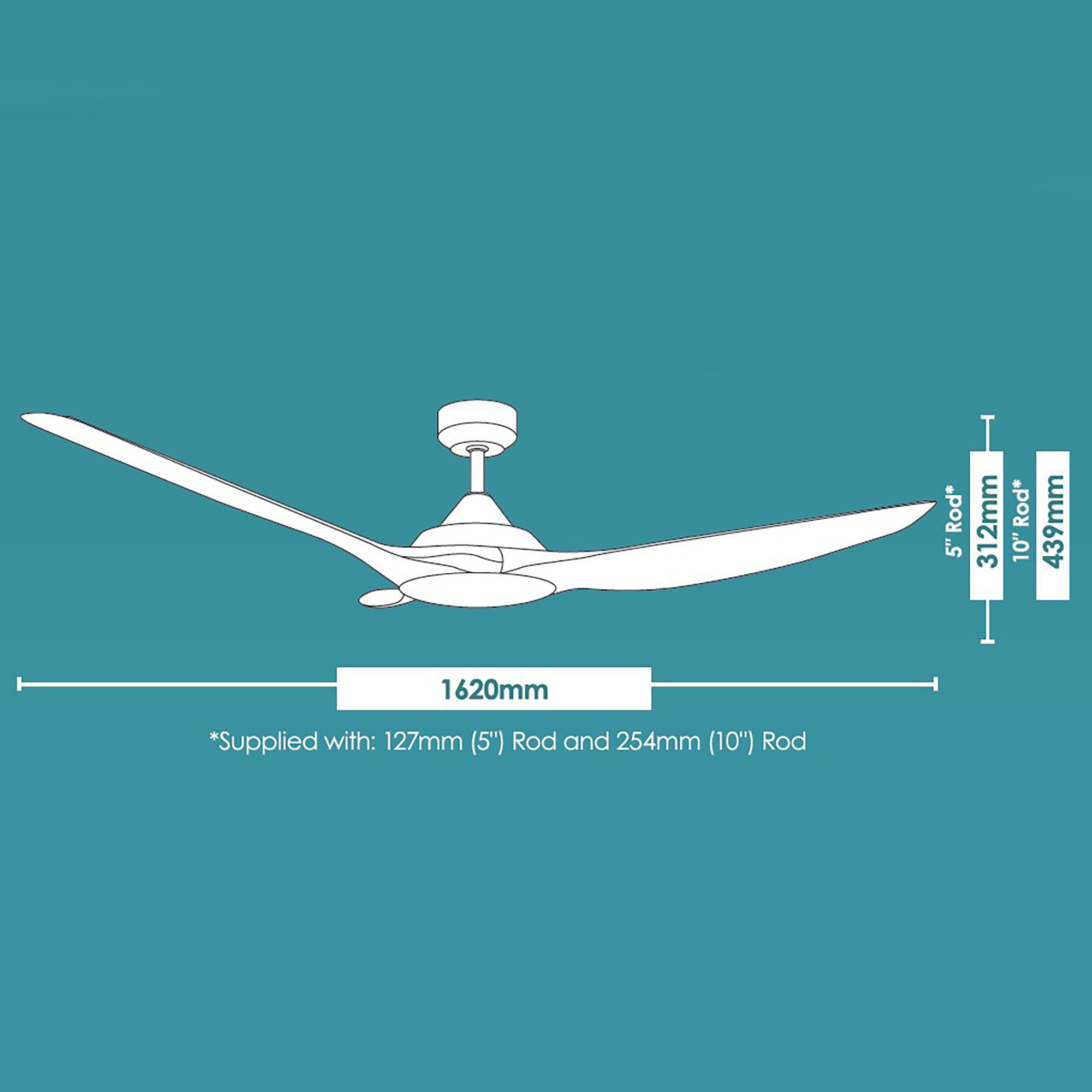 The New modern Raven RWS ceiling fan now comes complete with the option of a Wired DC wall controller with an incorporated isolation switch as well as a remote control and also WIFI compatibility not to mention an energy efficient 45W DC motor and fully reversible for summer & winter settings.